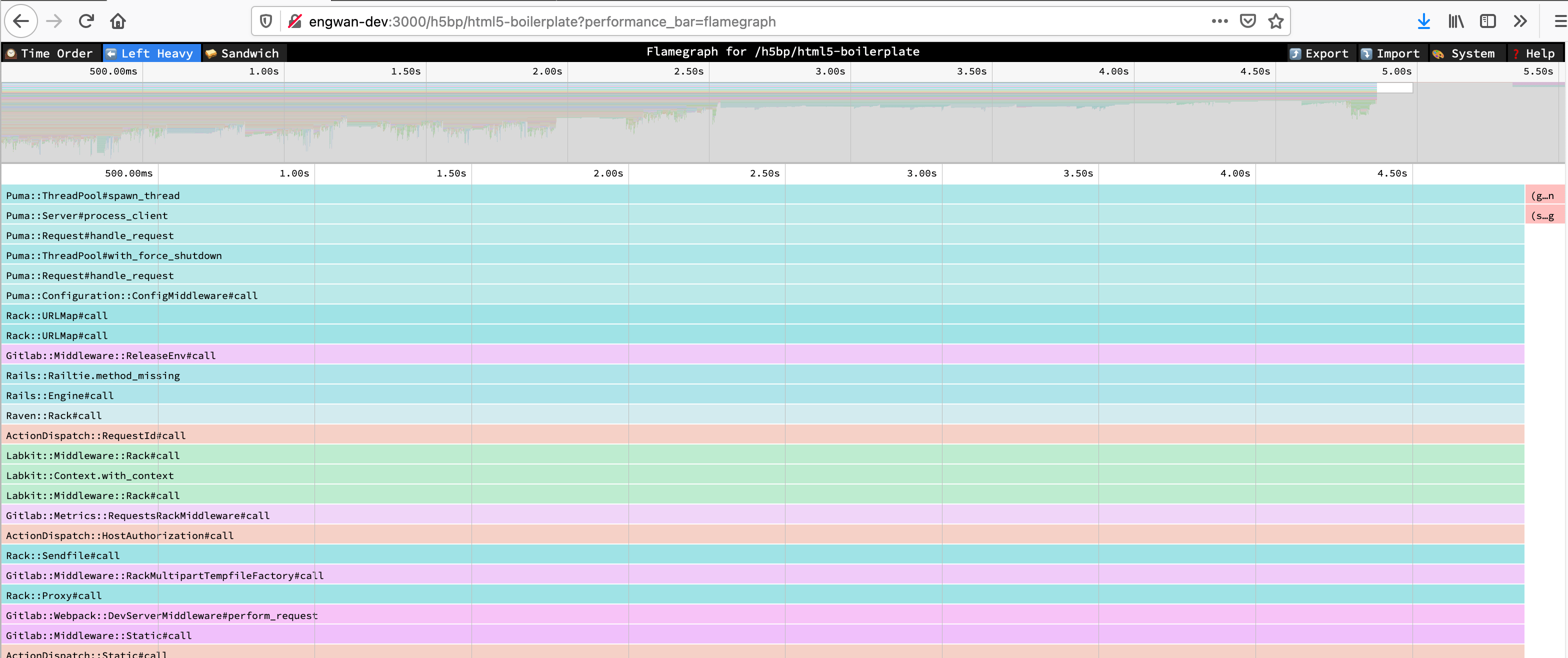 To disable those features for profiling/benchmarking set the RAILS_PROFILE environment variable to true before starting GitLab. For example when using GDK: