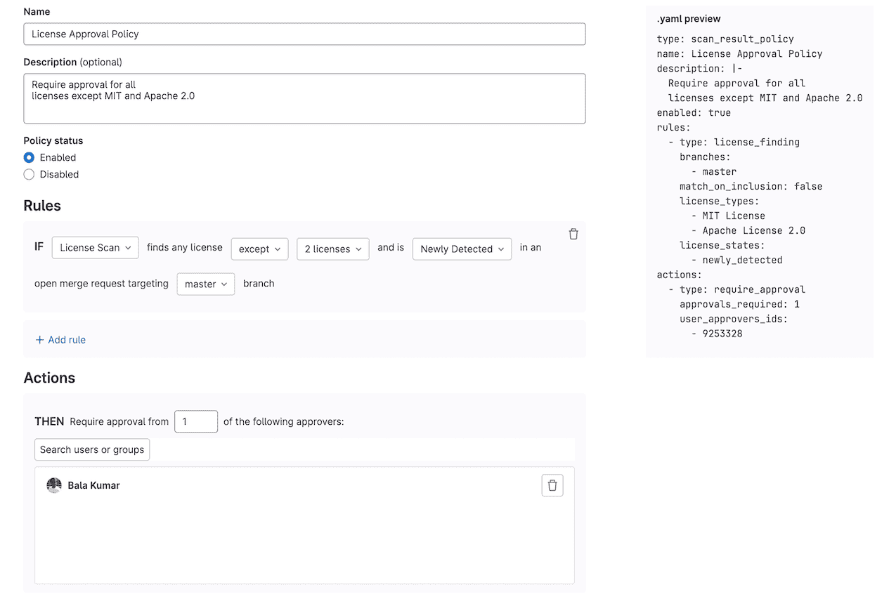 License approval policies allow you to specify multiple types of criteria that define when approval is required before a merge request can be merged in.