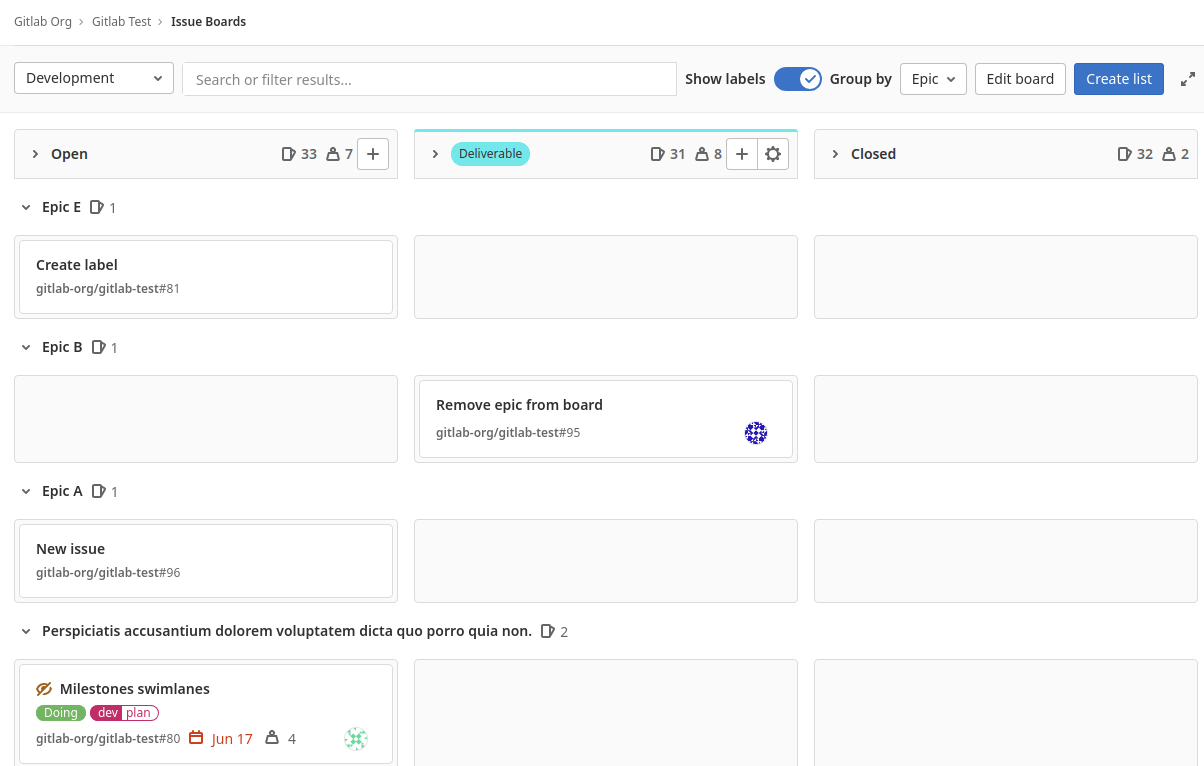 For a tutorial how to set up your boards in a similar way with scoped labels, see Tutorial: Set up issue boards for team hand-off.